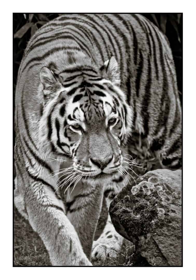 Ohne die Schritte im Einzelnen zu erläutern, stelle ich hier drei Bilder im Vorher-Nachher-Vergleich vor, die ich mit Darktable bearbeitet und nach Schwarzweiß (Black & White) transformiert habe. Die Fotos sind bei ziemlich bescheidenem Wetter im Zoo Münster entstanden. Wegen der trüben Lichtverhältnisse habe ich sie mit ISO 800 aufnehmen müssen. Ausnahmsweise habe ich dafür keine meiner eigenen Kameras verwendet. Ich hatte keine passende Brennweite dabei. Wegen der sehr großen Entfernung zu den Objekten meiner Begierde, habe ich mir deshalb kurzerhand eine Kamera von meiner Frau gegriffen – eine Nikon D5200 mit einem Sigma 70-300 mm. Das Objektiv ist eine echte “Scherbe”. Es ist absolut nicht vergleichbar mit meinen Nikon-Objektiven. Für den geringen Preis ist es aber dennoch ganz brauchbar. Man darf nur nicht allzu pingelig sein, was die Scharfzeichnung, die gleichmäßige Ausleuchtung etc. angeht.
